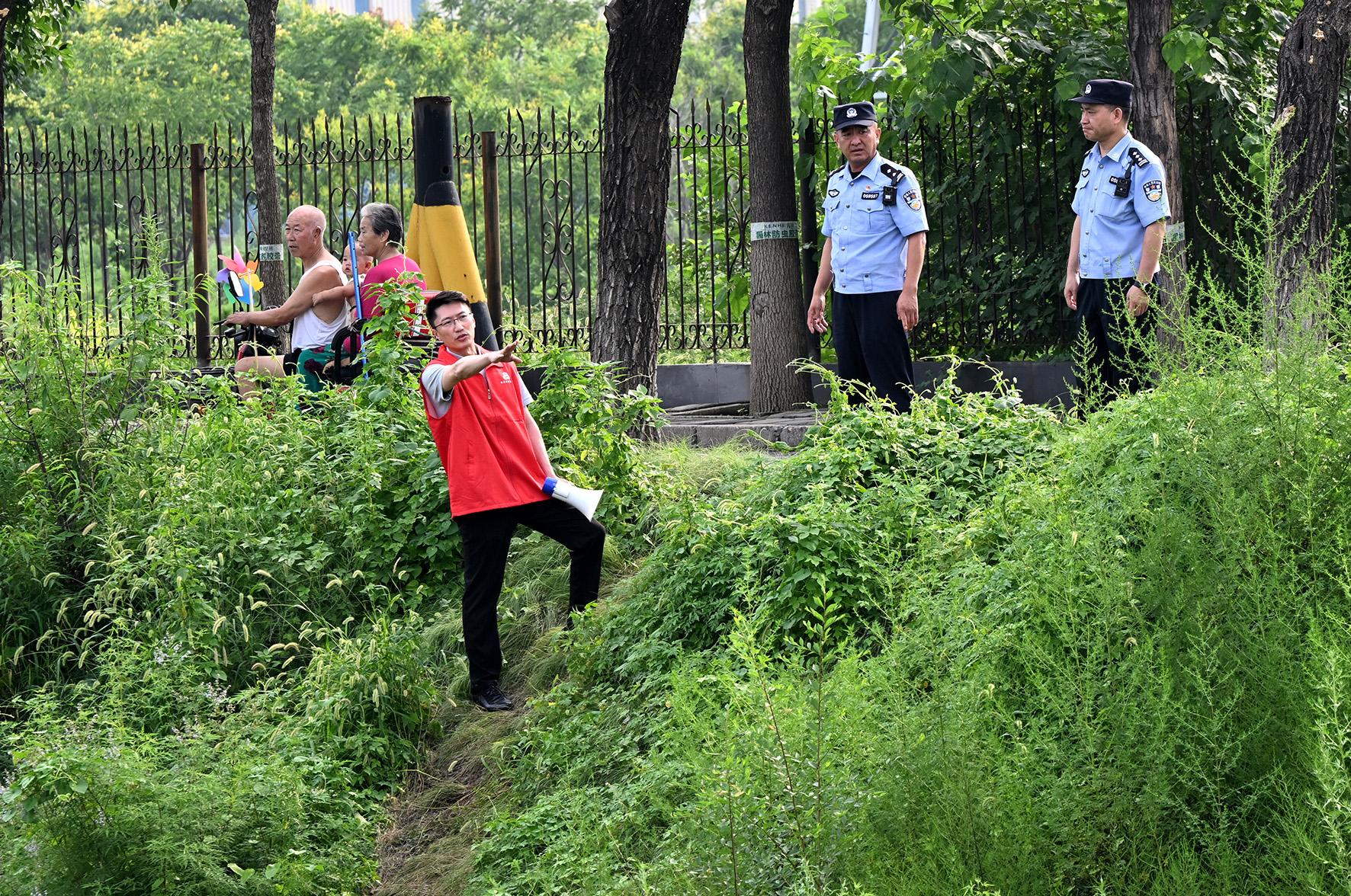 8月4日,懷柔區(qū)北房鎮(zhèn)政法委員孟德輝與北房派出所民警前往河道兩側(cè),對(duì)高危點(diǎn)位進(jìn)行研判、布控。