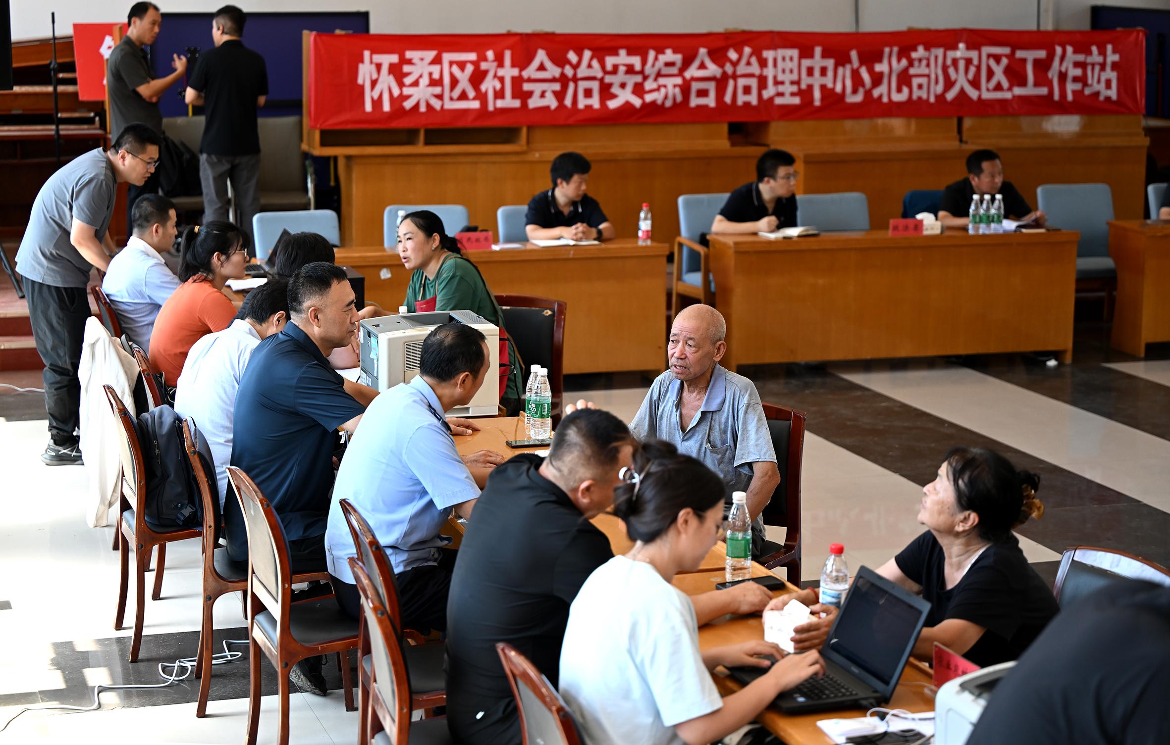 “回村一下車(chē),沒(méi)想到有這么多政府部門(mén)的工作人員在這兒,看到他們,心里就不慌了?!?月6日,剛從北京市懷柔區(qū)轉(zhuǎn)移安置點(diǎn)返回家園的村民孫大媽感慨。與孫大媽一同“抵達(dá)”的,還有一家臨時(shí)“綜治中心”,在當(dāng)天正式運(yùn)行。此前,懷柔區(qū)依托綜治中心機(jī)制模式,在受災(zāi)嚴(yán)重的琉璃廟鎮(zhèn)成立了由區(qū)委政法委牽頭、多部門(mén)協(xié)同聯(lián)動(dòng)的政策咨詢(xún)服務(wù)中心,向前一步主動(dòng)服務(wù)受災(zāi)群眾。