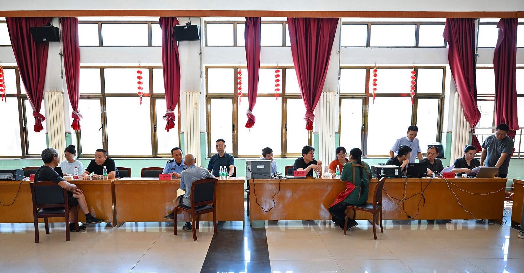 8月6日,臨時(shí)“綜治中心”秩序井然,懷柔區(qū)人民法院、北京市公安局懷柔分局、懷柔區(qū)司法局、懷柔區(qū)農(nóng)業(yè)農(nóng)村局等職能部門(mén)窗口的工作人員都耐心回應(yīng)著村民的每一個(gè)訴求。