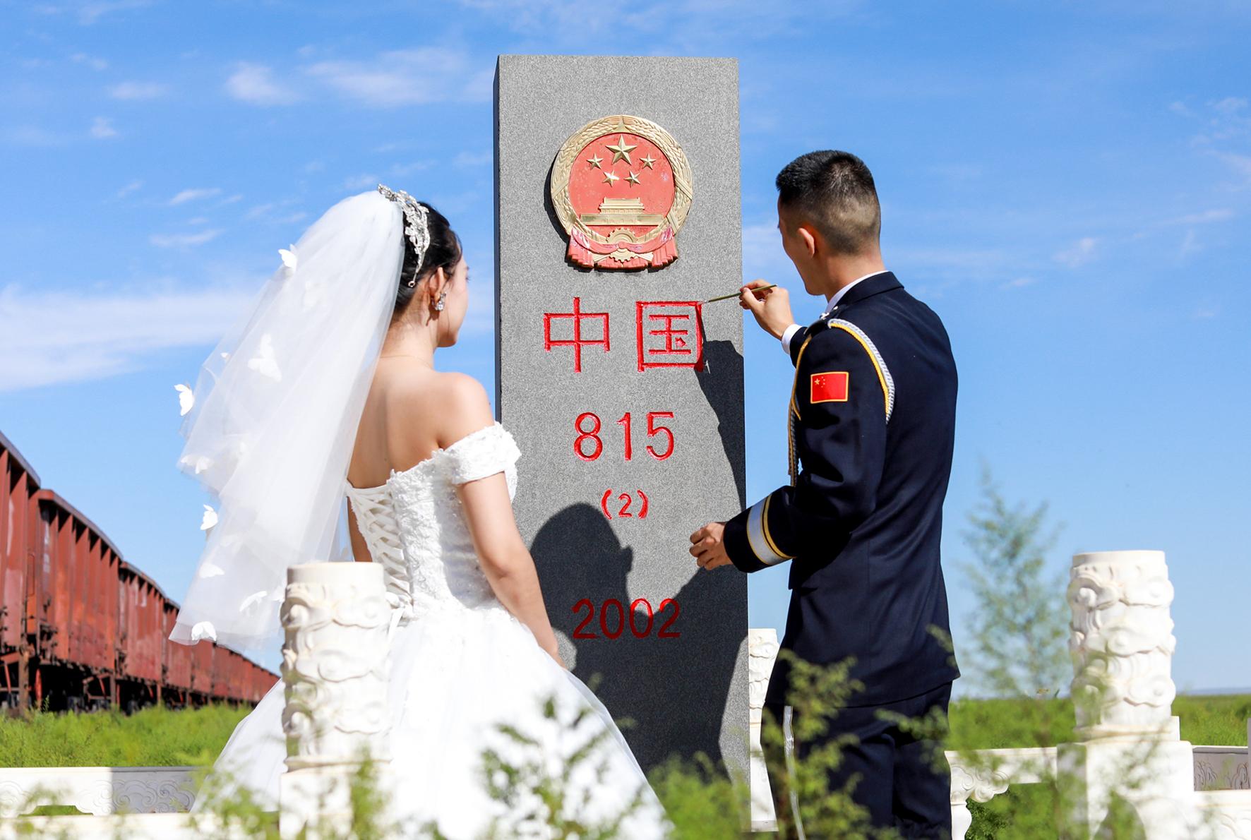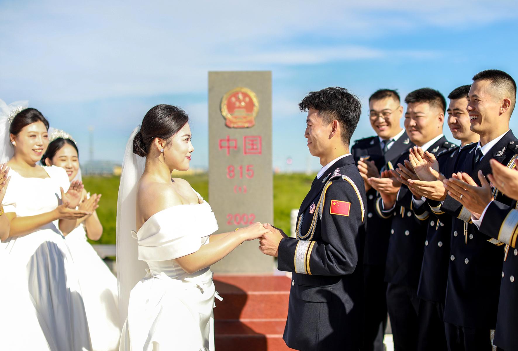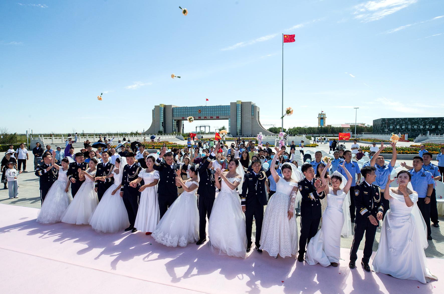 8月16日,內(nèi)蒙古出入境邊防檢查總站二連出入境邊防檢查站隆重舉辦第六屆“愛(ài)在北疆 情定國(guó)門”集體婚禮,9對(duì)新人在象征著國(guó)家主權(quán)與尊嚴(yán)的巍峨國(guó)門前,許下了“執(zhí)子之手 與子偕老”的誓言。
