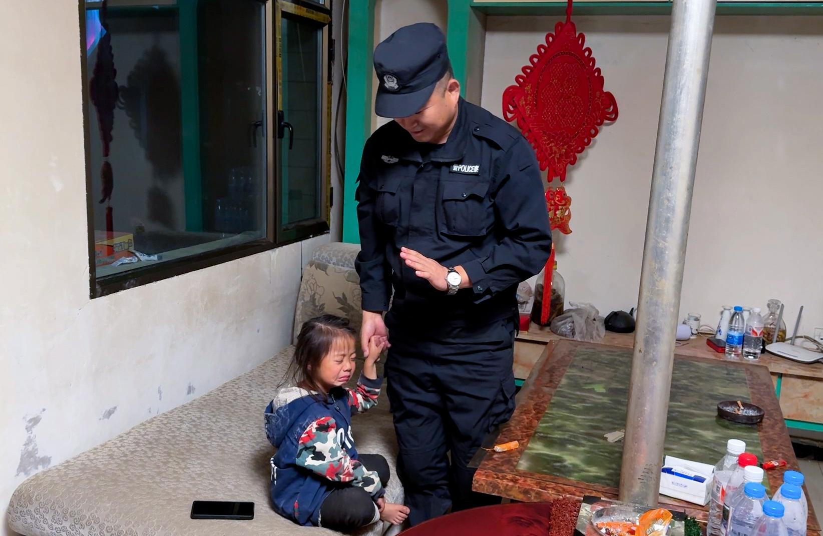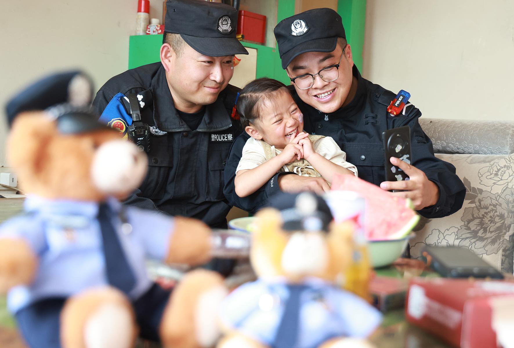 當(dāng)晚,民警們要輪崗去其他點位執(zhí)勤?,幀幖绷耍o緊拉住蘇明凱的手,哭著說:“叔叔別走!別走嘛……”看著孩子哭得通紅的小臉,蘇明凱柔聲承諾:“瑤瑤乖,叔叔過幾天就回來看你,好不好?”瑤瑤抽噎著說:“那……那我要兩個‘貼貼’!”