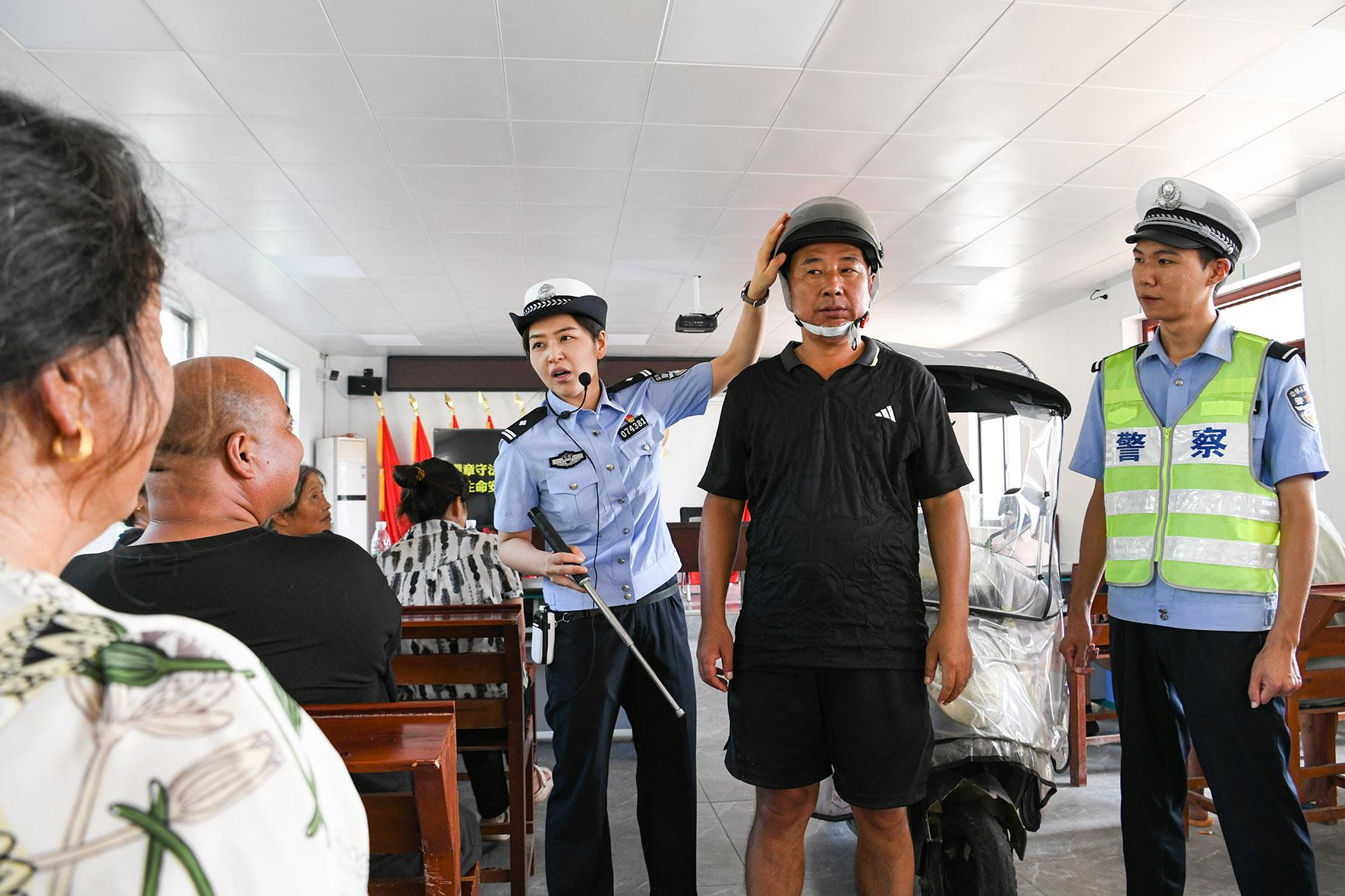 9月4日,安徽省馬鞍山市含山縣公安局交管大隊(duì)民警走進(jìn)銅閘鎮(zhèn)大馬行政村,開展“美麗鄉(xiāng)村行”交通安全巡回宣傳活動,將安全知識送到村民家門口。