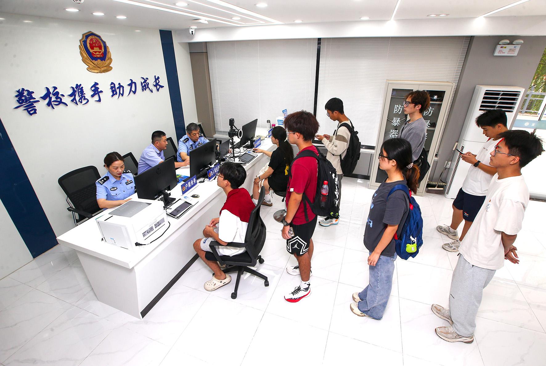 9月12日,山東省濟(jì)南市公安局市中分局基礎(chǔ)管控大隊(duì)聯(lián)合七賢派出所在濟(jì)南大學(xué)警務(wù)室開展“戶政宣傳進(jìn)校園”主題活動(dòng),民警為大學(xué)新生集中辦理落戶、身份證和居住證申領(lǐng)業(yè)務(wù),開展戶籍政策宣傳。
