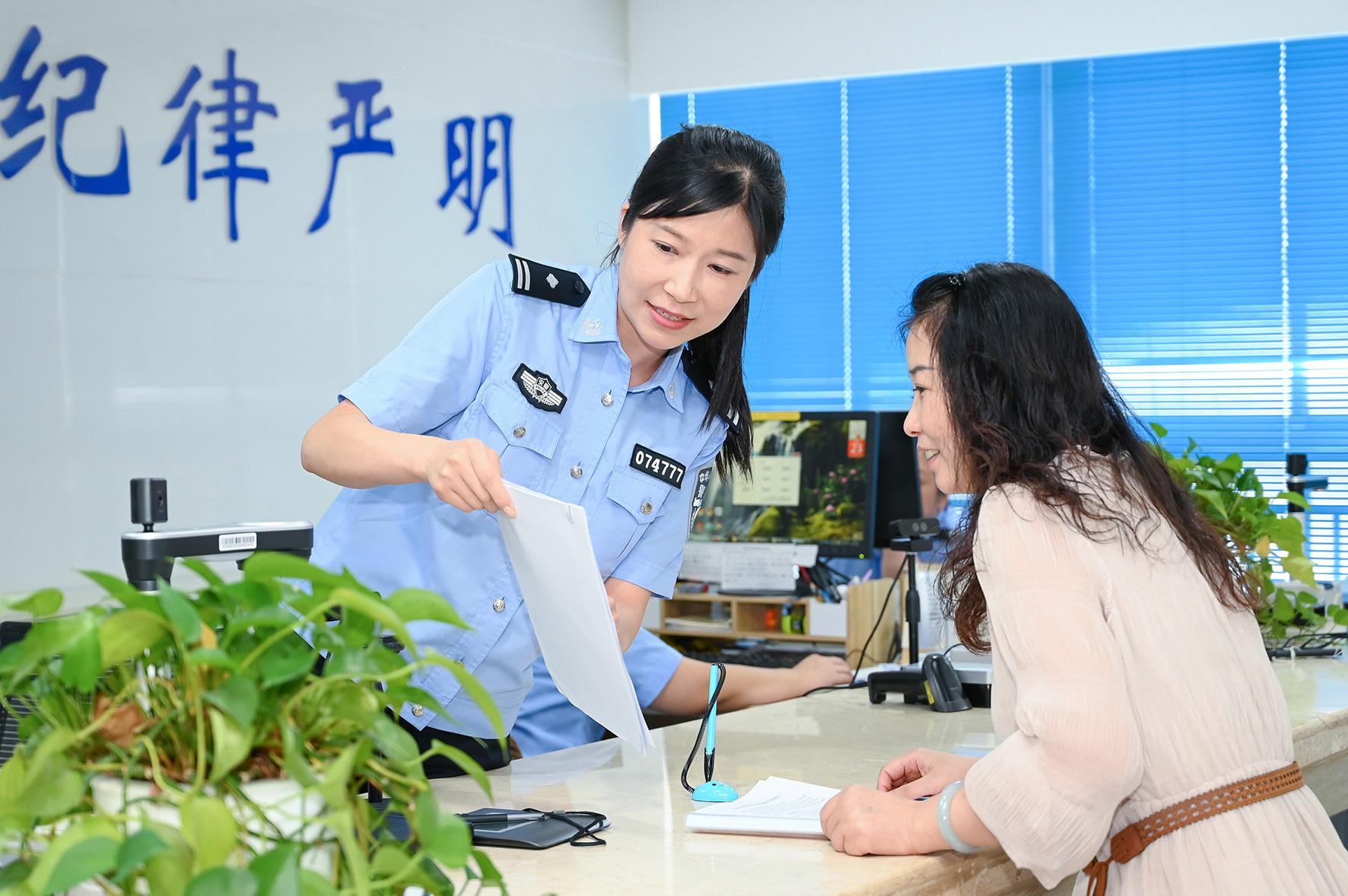 圖為9月23日,在和縣政務(wù)中心公安綜合窗口,民警正在為企業(yè)主辦理業(yè)務(wù)。