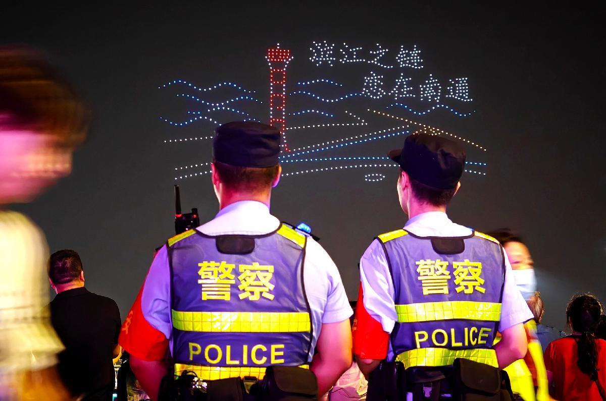 10月1日,長江航運(yùn)公安局南通分局民警在南通長江體育公園執(zhí)勤。