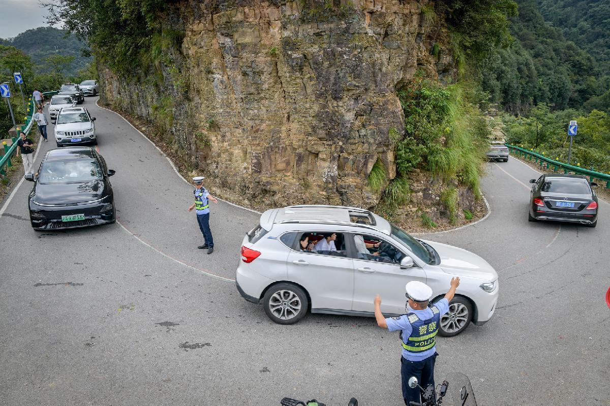 10月2日,安徽涇縣“皖南川藏線”迎來客流高峰。涇縣公安局全警動(dòng)員,采取“機(jī)動(dòng)+定點(diǎn)”的工作方式,在易堵彎道、觀景臺(tái)等關(guān)鍵部位派駐警力駐點(diǎn)執(zhí)勤。