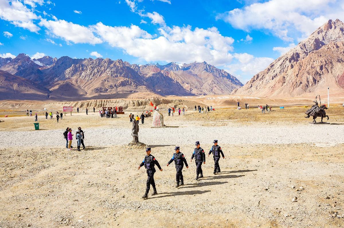 10月1日,新疆喀什邊境管理支隊(duì)塔什庫爾干邊境管理大隊(duì)在轄區(qū)各個(gè)景區(qū)部署警力,為游客安全出行保駕護(hù)航。