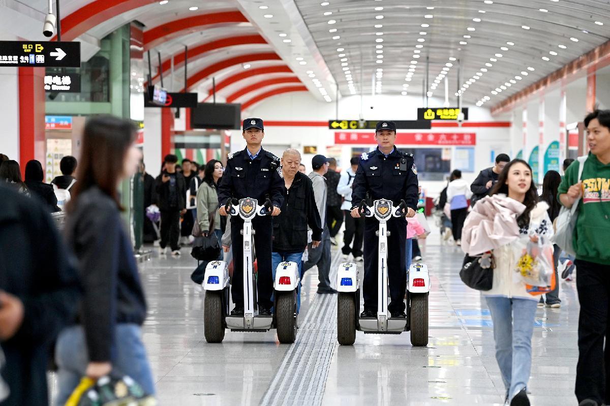 10月1日,西安鐵路公安局西安公安處科學(xué)部署警力,全力維護(hù)治安秩序穩(wěn)定,確保旅客出行安全。