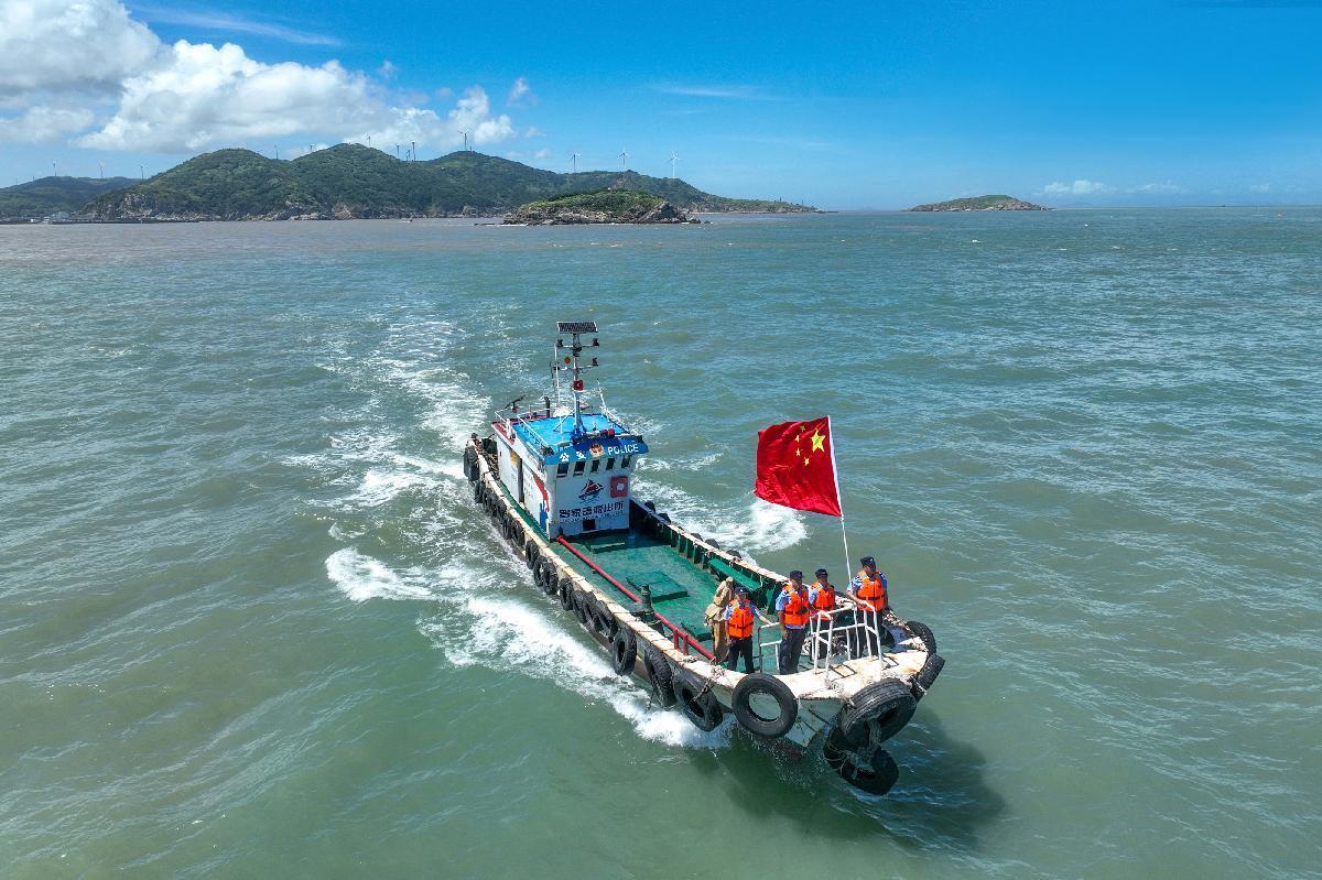 10月1日,浙江省舟山市岱山縣公安局羅家岙派出所民警堅(jiān)守崗位,乘坐“紅帆110”船開展海上巡查行動(dòng),守護(hù)轄區(qū)平安。