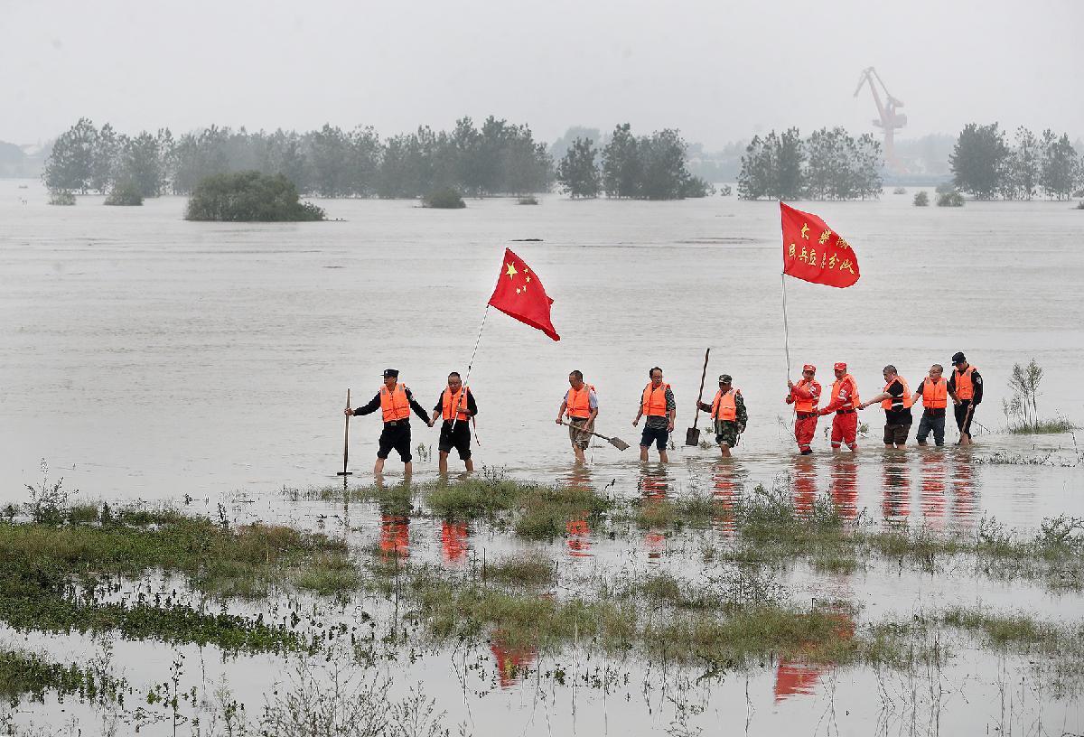 10月1日,湖北省鐘祥市公安局柴湖派出所民警和民兵應(yīng)急分隊(duì)組成巡查隊(duì),在柴湖鎮(zhèn)漢江堤防開展“拉網(wǎng)式”排查。