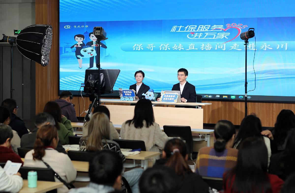 10月29日,重慶市社會保險局在永川區(qū)中山路街道星光社區(qū)開展2025年“社保服務進萬家”暨“保哥保妹直播間”走進社區(qū)活動,通過“云端”互動與現場咨詢相結合的方式,將社保政策與暖心服務送到群眾身邊。