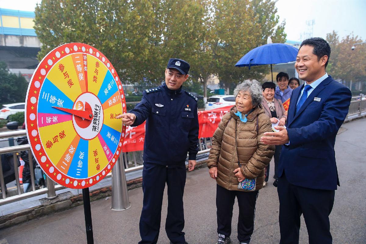 11月8日,山東省濟(jì)南市公安局市中分局六里山派出所聯(lián)合銀行在轄區(qū)大型商超開展反詐宣傳。