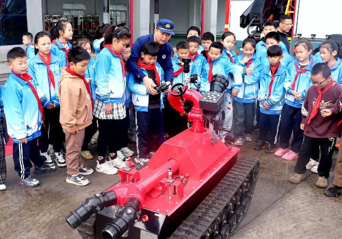 11月10日,山東省棗莊市薛城區(qū)鄒塢鎮(zhèn)洪村小學(xué)40余名師生走進鄒塢鎮(zhèn)消防救援站,零距離體驗消防器材,學(xué)習(xí)消防知識。