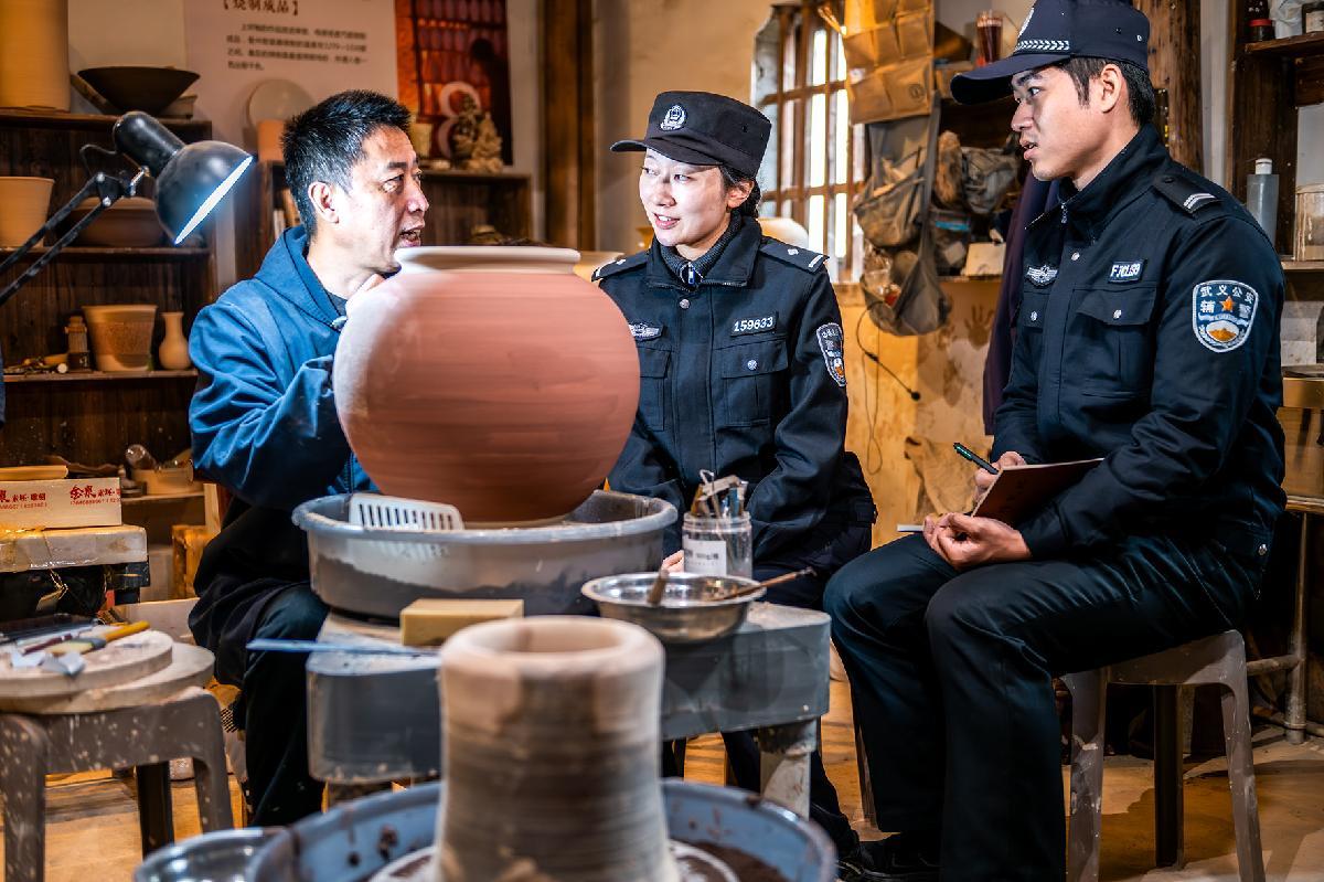 11月14日,浙江省武義縣公安局壺山派出所民輔警走訪非遺工坊,傾聽他們對公安工作的需求,宣傳知識產(chǎn)權(quán)保護法律法規(guī),當(dāng)好非遺傳承發(fā)展守護者。