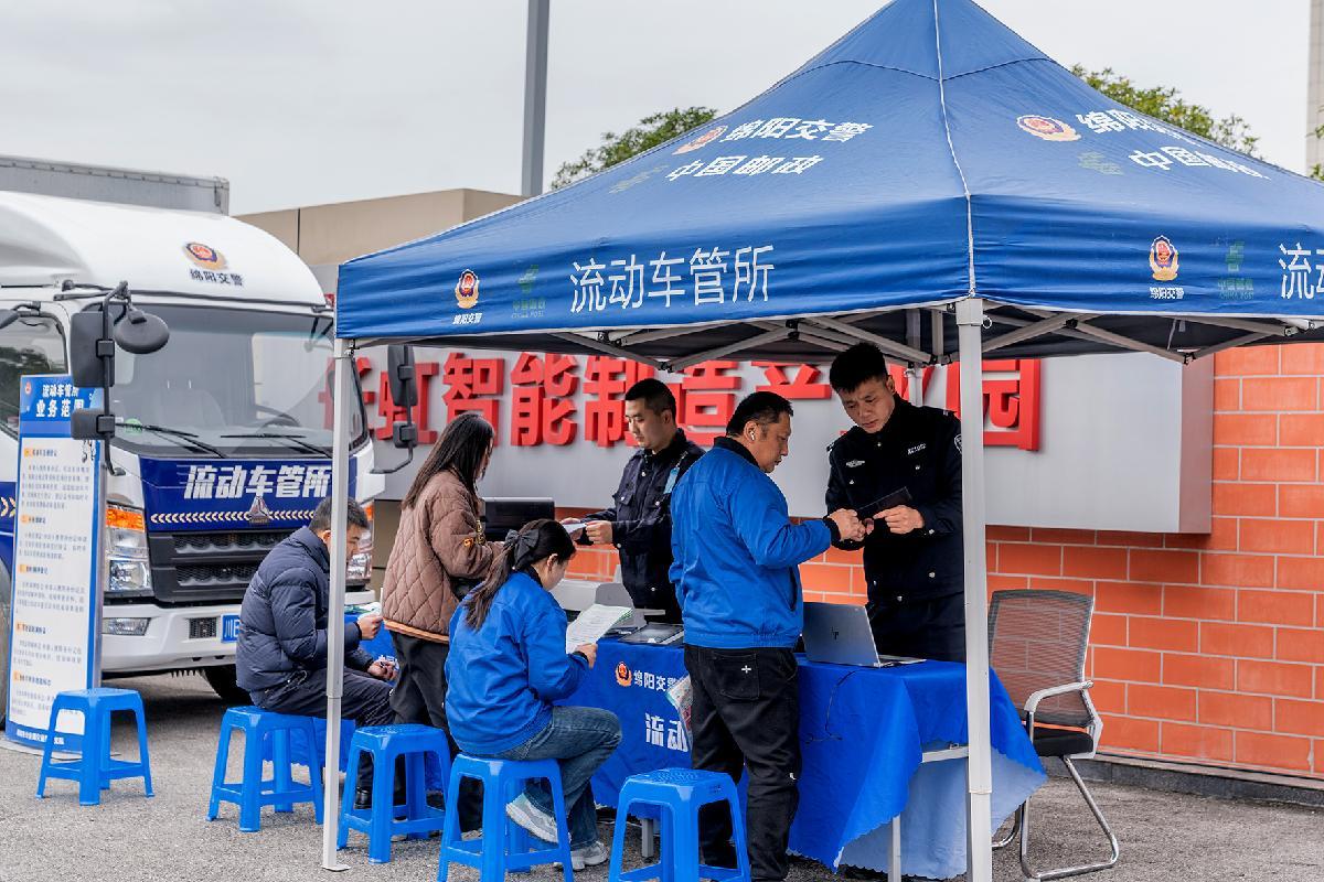 11月18日,四川省綿陽(yáng)市公安局交通警察支隊(duì)將“流動(dòng)車(chē)管所”搬進(jìn)綿陽(yáng)市高新區(qū)產(chǎn)業(yè)園,為企業(yè)員工帶來(lái)廠門(mén)口的車(chē)駕管服務(wù)。