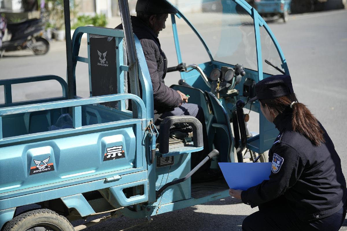 11月19日,安徽省蕪湖市公安局平鋪派出所對轄區(qū)三輪車違法行為開展勸導整治。