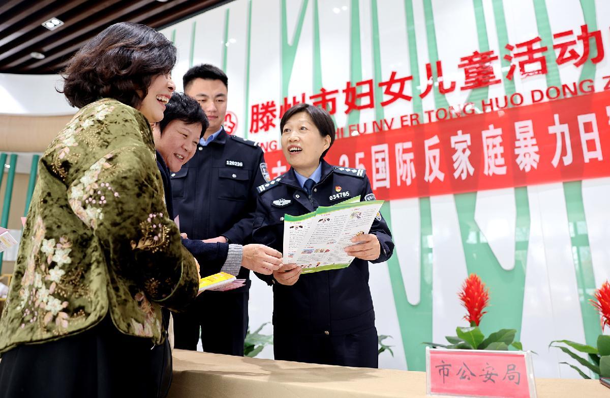 11月21日,在“國際反家庭暴力日”到來之際,山東省滕州市公安局聯(lián)合法院、檢察院、婦聯(lián)等部門開展“反對家庭暴力 守護(hù)幸福家庭”法治宣傳。