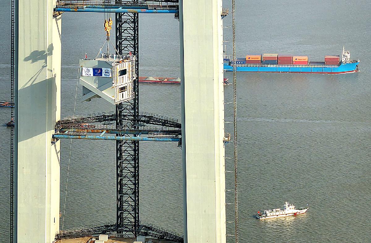 12月1日,江蘇張靖皋長江大橋南航道橋南主塔成功封頂。張家港海事局采取優(yōu)化施工水域警戒力量、深化節(jié)段梁水上運輸風險隱患排查、強化智慧立體動態(tài)監(jiān)管等一系列有效措施,為國家重點工程建設保駕護航。