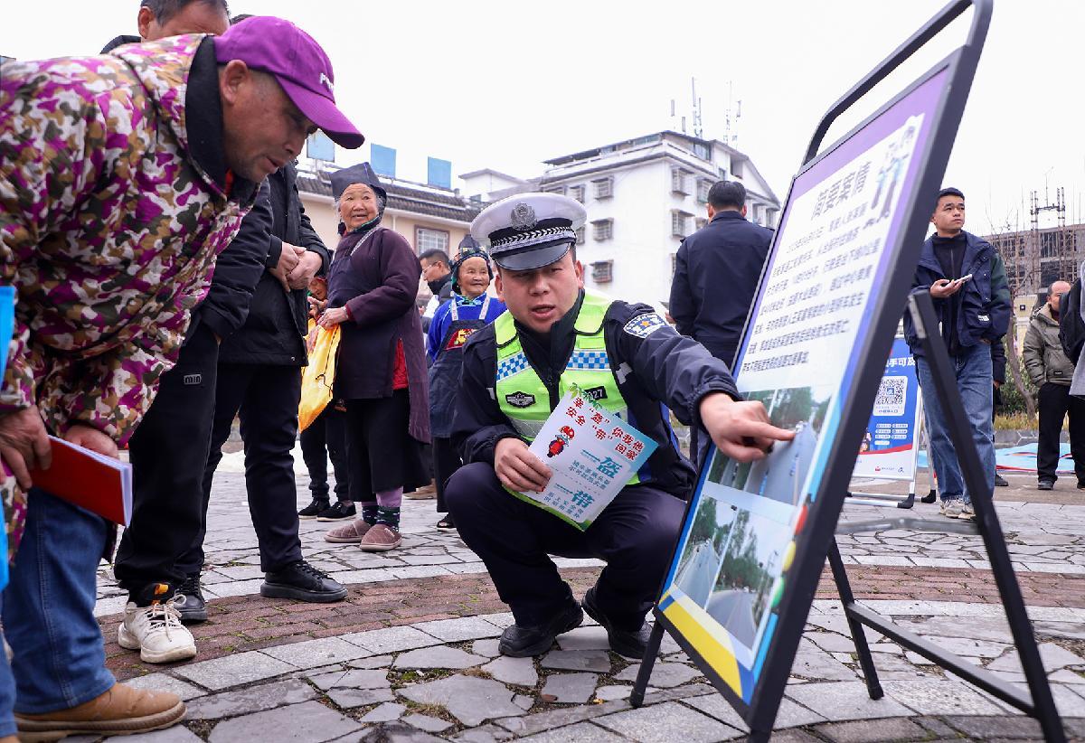 12月3日,貴州省丹寨縣公安局交警大隊(duì)利用農(nóng)村趕集日,組織民輔警在揚(yáng)武鎮(zhèn)金揚(yáng)廣場(chǎng)開展道路交通安全宣傳。