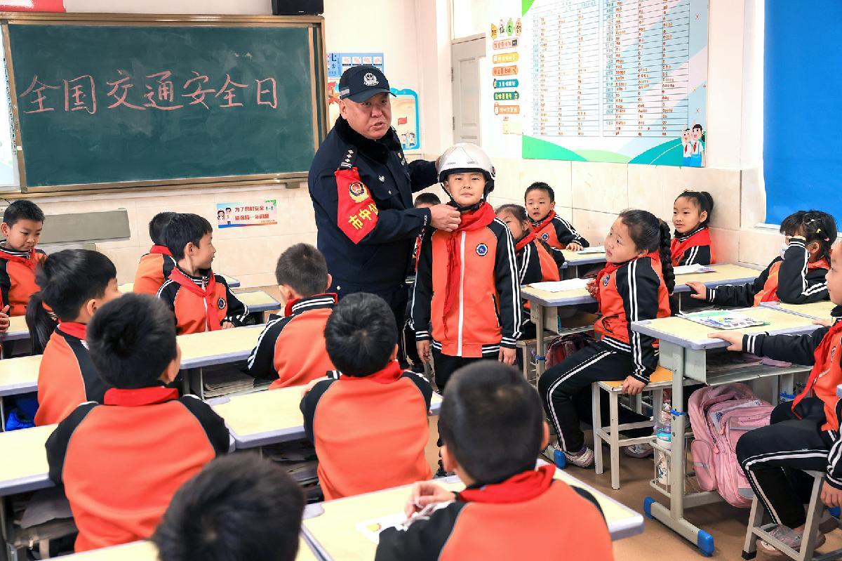 12月2日,山東省濟(jì)南市公安局市中分局六里山派出所民警來到濟(jì)南市玉函小學(xué),開展“全國交通安全日”主題宣傳。