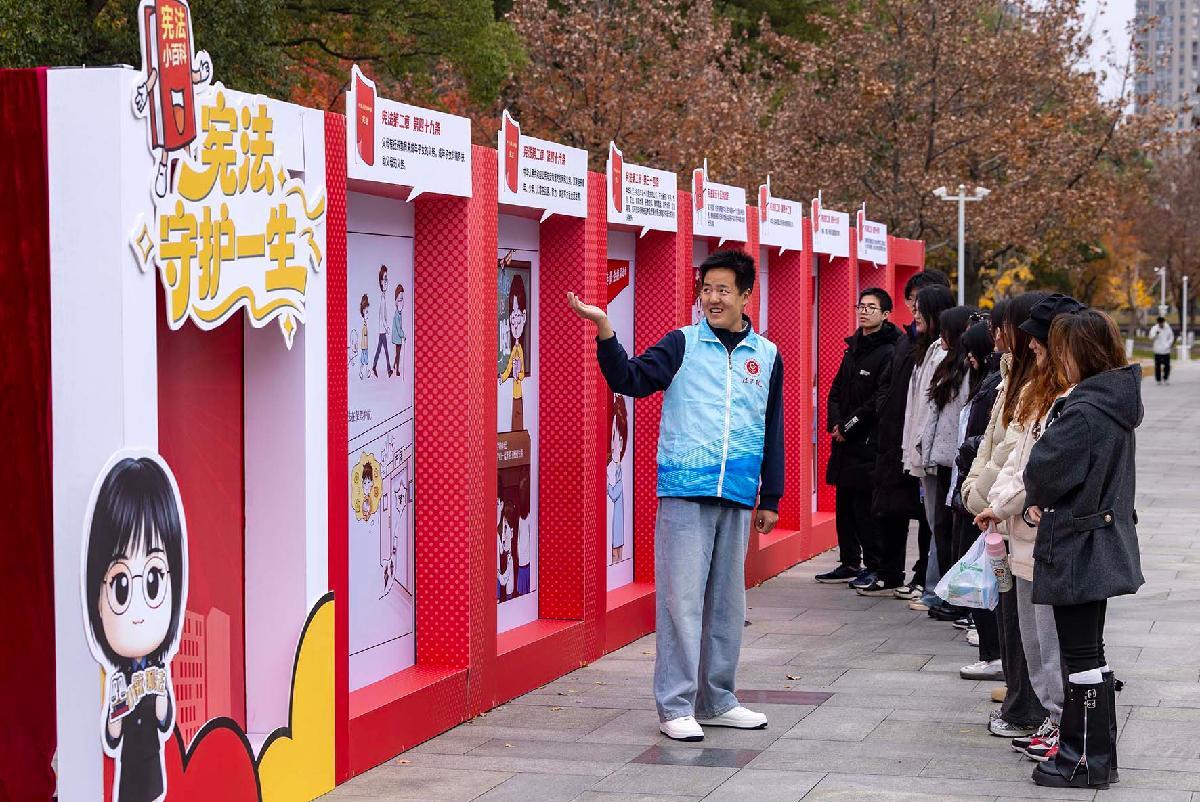 12月2日,江蘇省南京師范大學泰州學院組織學生參觀學習憲法知識宣傳展板。