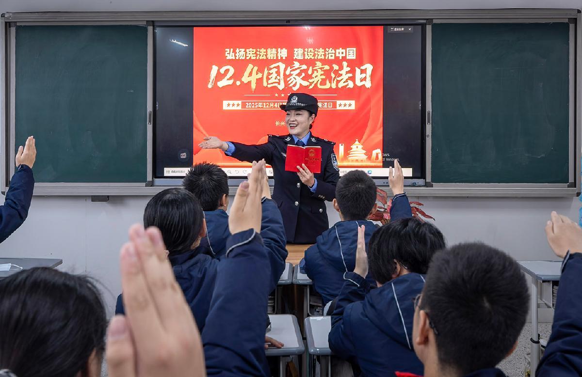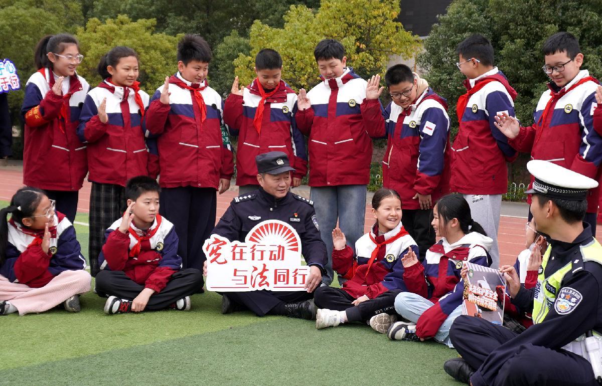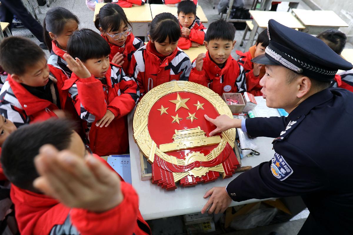 12月2日,安徽省蕪湖市公安局鏡湖分局民警走進校園,開展“國家憲法日”宣傳。