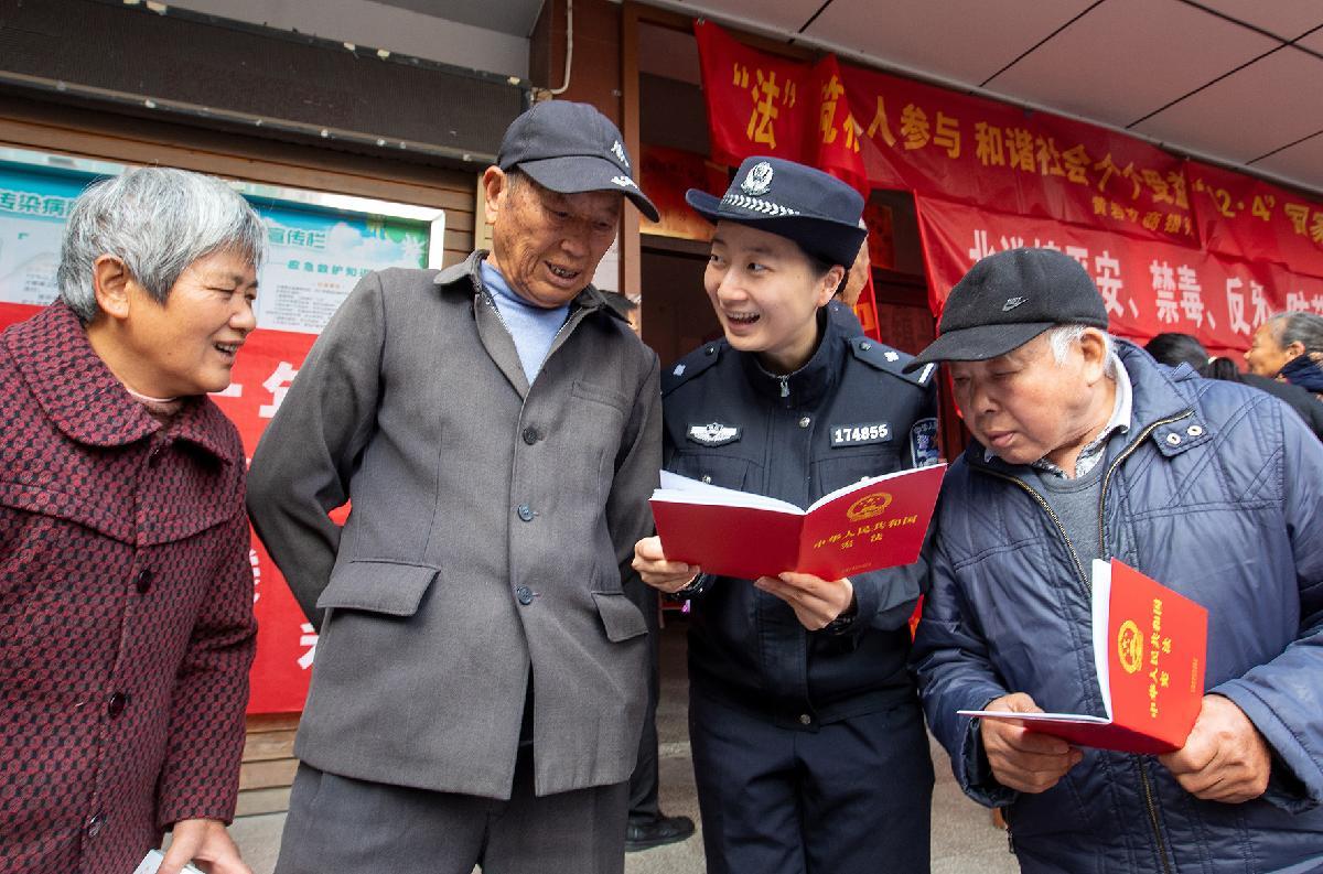 12月2日,浙江省臺州市公安局黃巖分局北洋派出所民警在北洋鎮(zhèn)集市開展憲法宣傳。