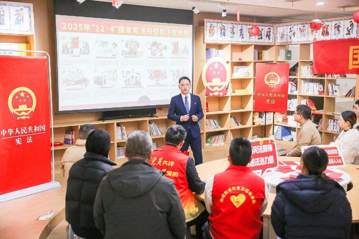12月2日,在江蘇省如皋市如城街道城西社區(qū),律師向居民宣講憲法知識。