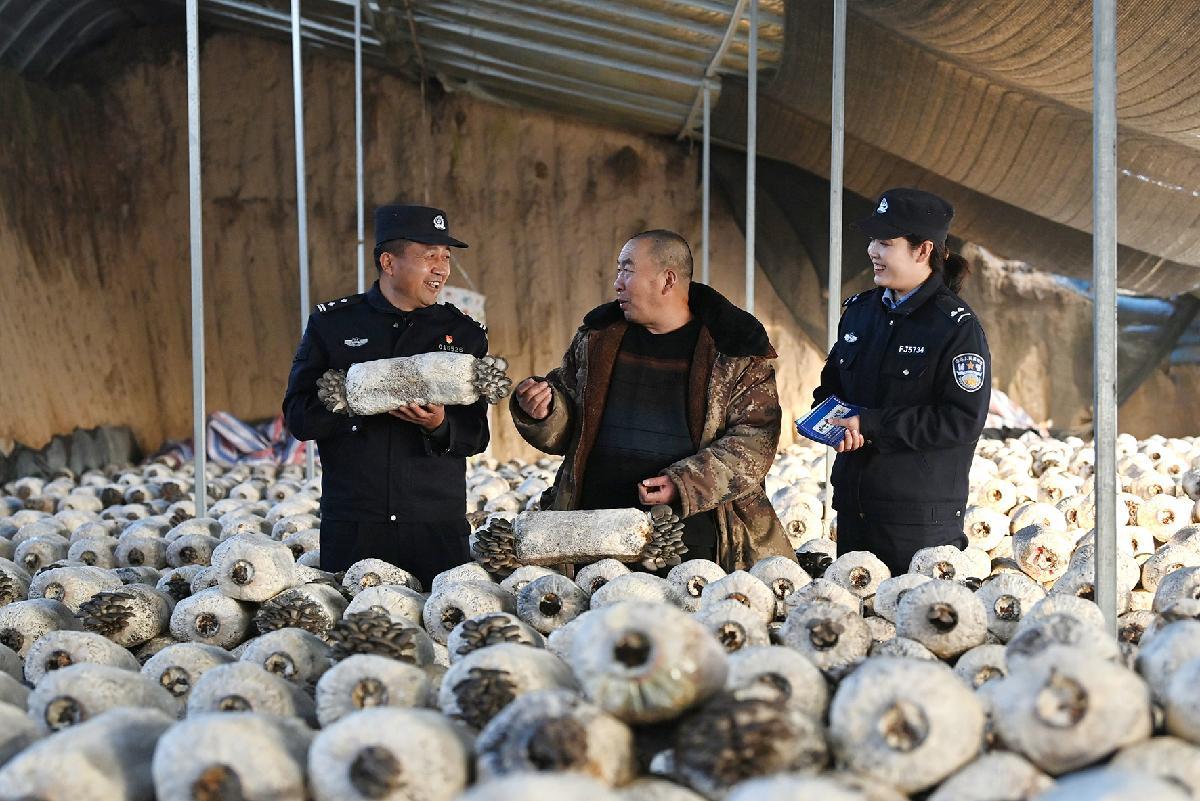 12月11日,甘肅省蘭州市公安局七里河分局西果園派出所民輔警在蔬菜大棚開展走訪工作。