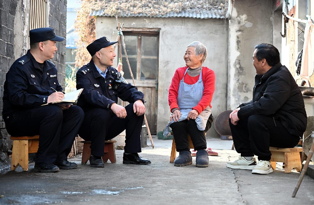 12月16日,安徽省馬鞍山市當(dāng)涂縣公安局湖陽(yáng)派出所民警輔警走訪轄區(qū)群眾,宣傳冬季安全防范知識(shí)。