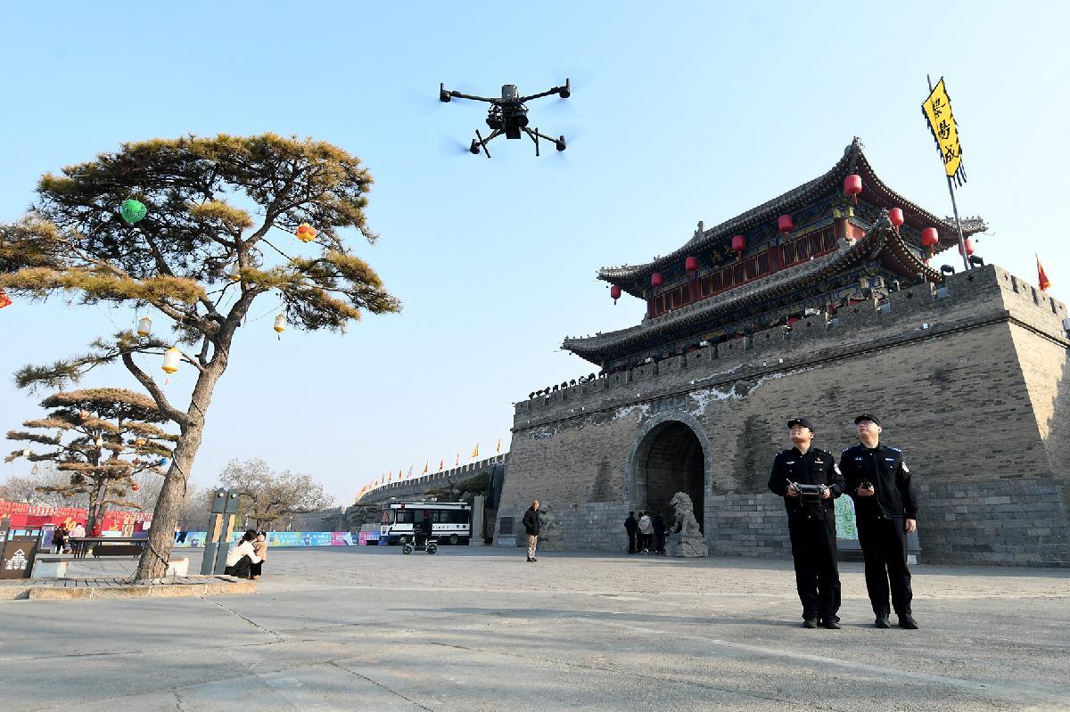 圖為1月4日,民輔警正在古城景區(qū)進(jìn)行警用無人機(jī)飛行訓(xùn)練。