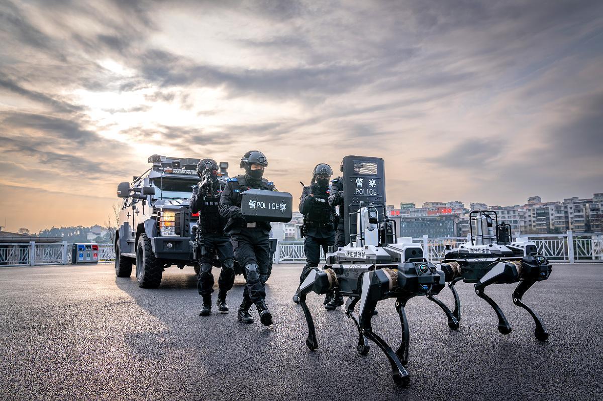 1月5日,四川省綿陽(yáng)市公安局特巡警支隊(duì)特警大隊(duì)以智能裝備賦能實(shí)戰(zhàn)練兵,開(kāi)展人機(jī)協(xié)同實(shí)戰(zhàn)化演練。