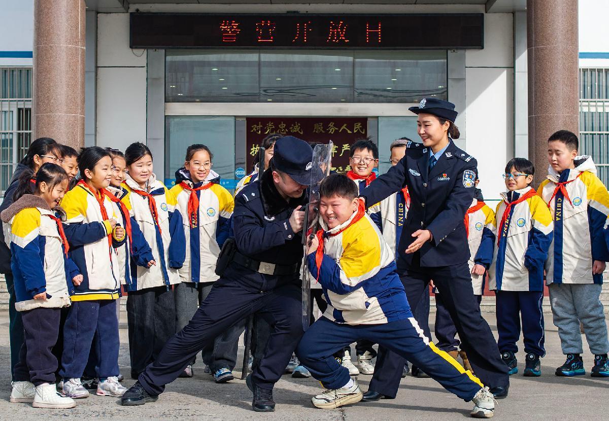 1月10日,江蘇省泰州市公安局海陵分局九龍派出所舉行警營(yíng)開(kāi)放日活動(dòng),邀請(qǐng)九龍實(shí)驗(yàn)學(xué)校學(xué)生現(xiàn)場(chǎng)體驗(yàn)警用裝備。