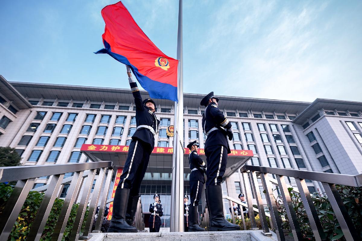 1月10日,浙江省臺(tái)州市公安局黃巖分局舉辦升警旗儀式,慶祝第六個(gè)中國(guó)人民警察節(jié)。