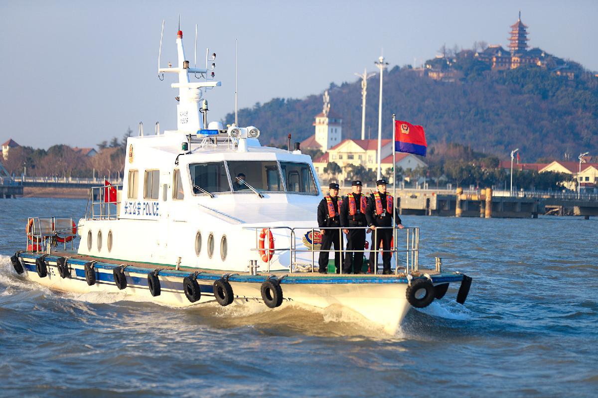 1月8日,長(zhǎng)江航運(yùn)公安局南通分局民警在南通五山片區(qū)水域開(kāi)展巡邏。