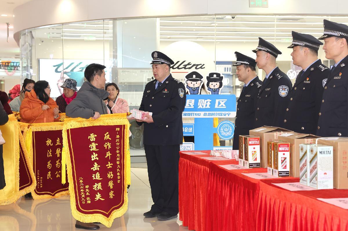 1月9日,山東省滕州市公安局在慶祝中國(guó)人民警察節(jié)宣傳活動(dòng)現(xiàn)場(chǎng),開(kāi)展贓款贓物返還工作。