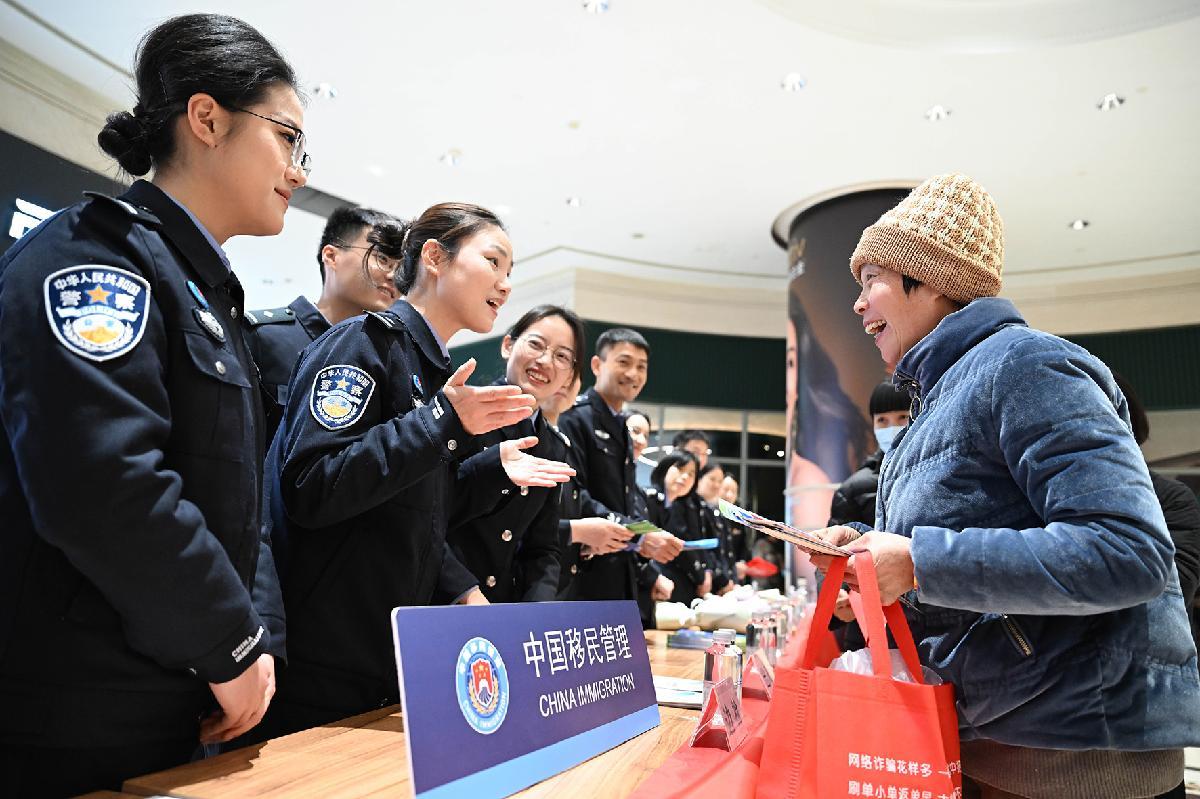 1月9日,江蘇出入境邊防檢查總站張家港出入境邊防檢查站聯(lián)合張家港市公安局開(kāi)展中國(guó)人民警察節(jié)主題宣傳。