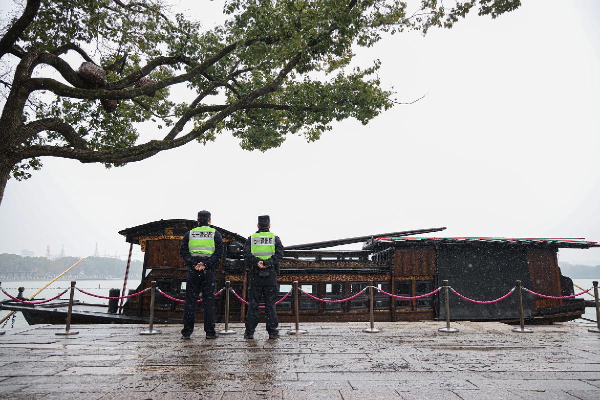 圖為民輔警在南湖“紅船守護崗”執(zhí)勤。