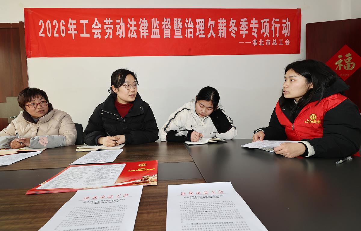 1月22日,安徽省淮北市總工會(huì)組織工會(huì)勞動(dòng)法律監(jiān)督員深入相山經(jīng)濟(jì)開(kāi)發(fā)區(qū)重點(diǎn)企業(yè),開(kāi)展2026年工會(huì)勞動(dòng)法律監(jiān)督暨治理冬季欠薪專(zhuān)項(xiàng)行動(dòng)。