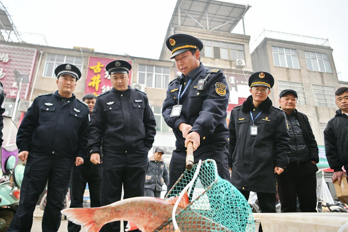 春節(jié)臨近,安徽省阜南縣農(nóng)業(yè)農(nóng)村局聯(lián)合公安局、市場(chǎng)監(jiān)督管理局等部門對(duì)轄區(qū)農(nóng)貿(mào)市場(chǎng)、超市和餐飲企業(yè),開(kāi)展原料采購(gòu)溯源、生產(chǎn)加工流程和淮河禁捕魚類監(jiān)督檢查,守護(hù)群眾節(jié)日“舌尖上的安全”。