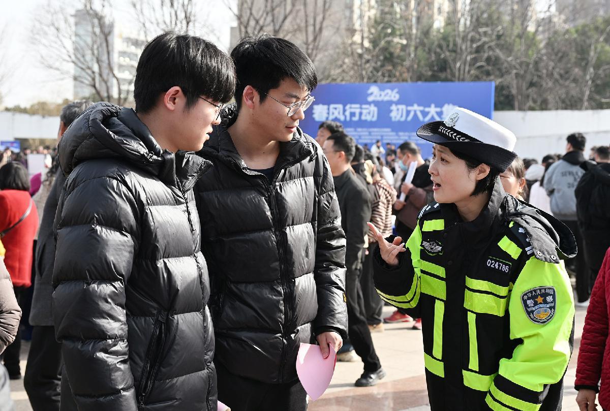 2月23日,安徽省寧國市公安局民輔警在2026年“春風(fēng)行動”暨就業(yè)援助季系列活動現(xiàn)場巡邏執(zhí)勤。
