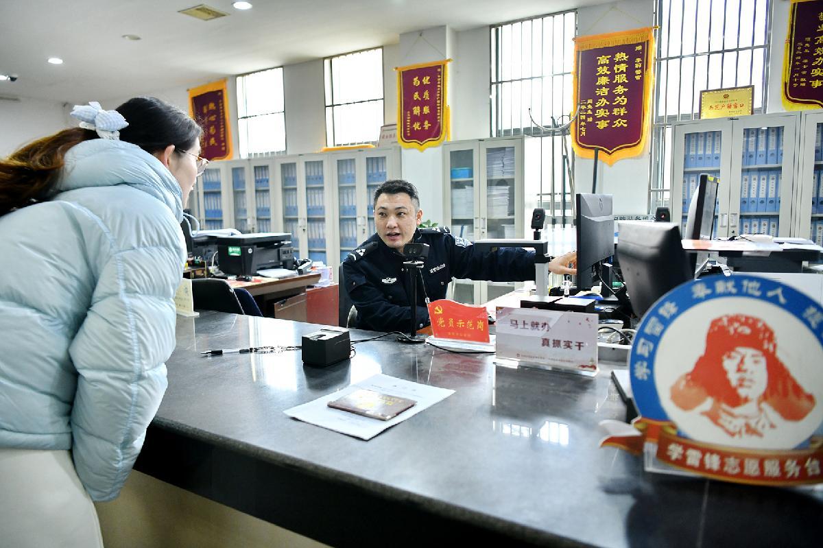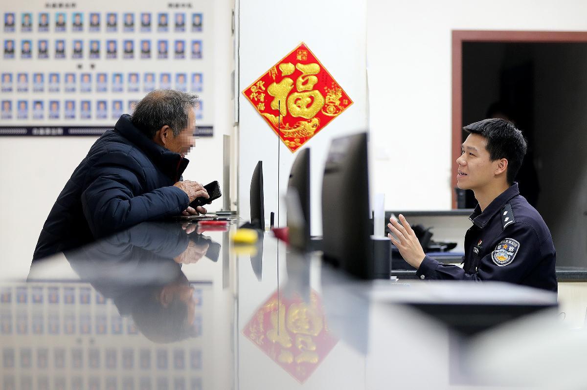 2月17日,安徽省阜南縣行政服務(wù)中心公安窗口工作人員在為群眾辦理身份證業(yè)務(wù)。