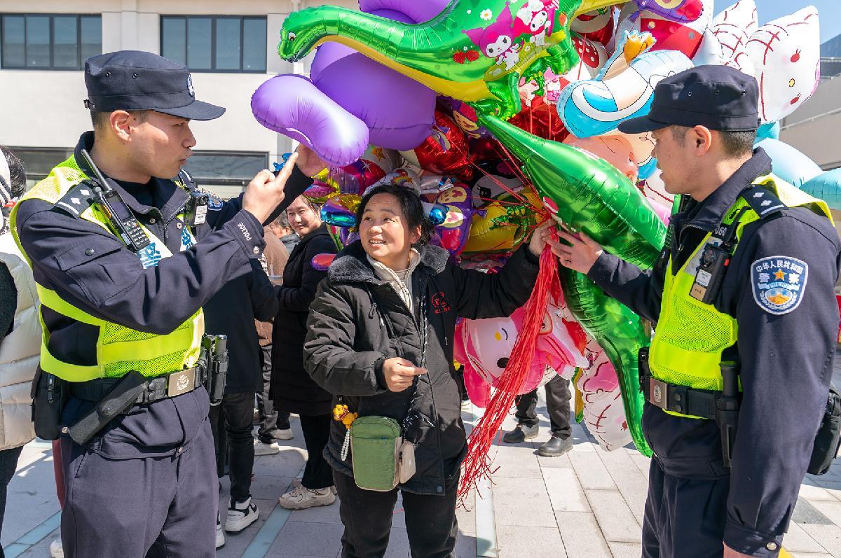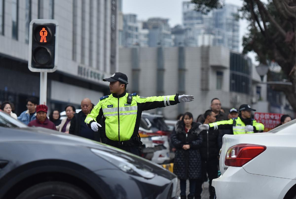 2月17日,四川省綿陽市公安局交警支隊直屬一大隊加大轄區(qū)民俗活動、商業(yè)區(qū)域周邊交通秩序管控力度,確保道路安全暢通。