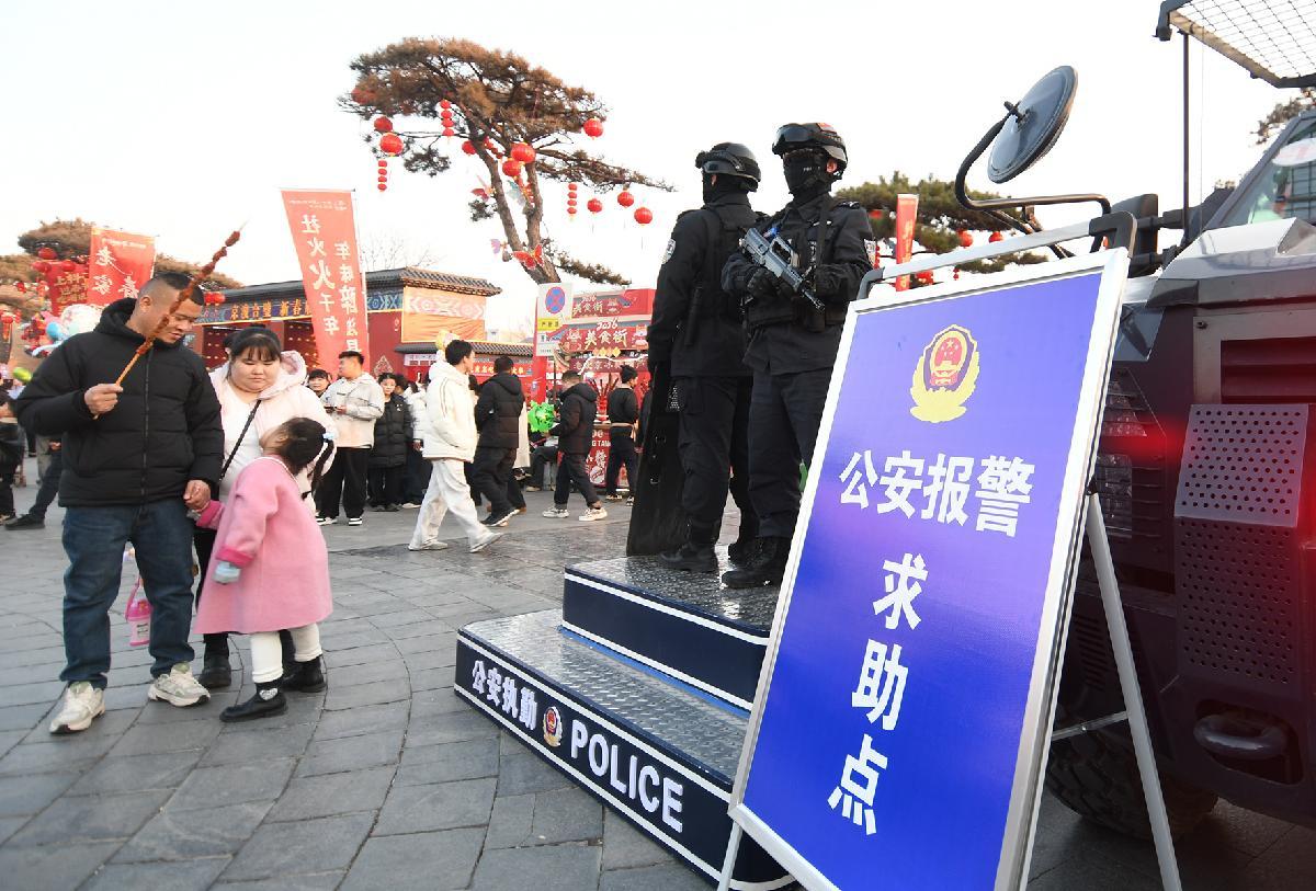 2月17日,河南省??h公安局民輔警在古城景區(qū)定點執(zhí)勤。