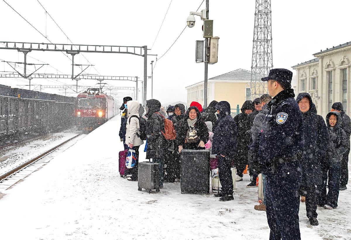 2月22日,吉林省白城市迎來降雪天氣。沈陽鐵路公安局白城公安處以雪為令,啟動惡劣天氣應(yīng)急處置預(yù)案,全面強化站車秩序維護、線路治安巡查工作,確保旅客乘車安全、管內(nèi)線路暢通。