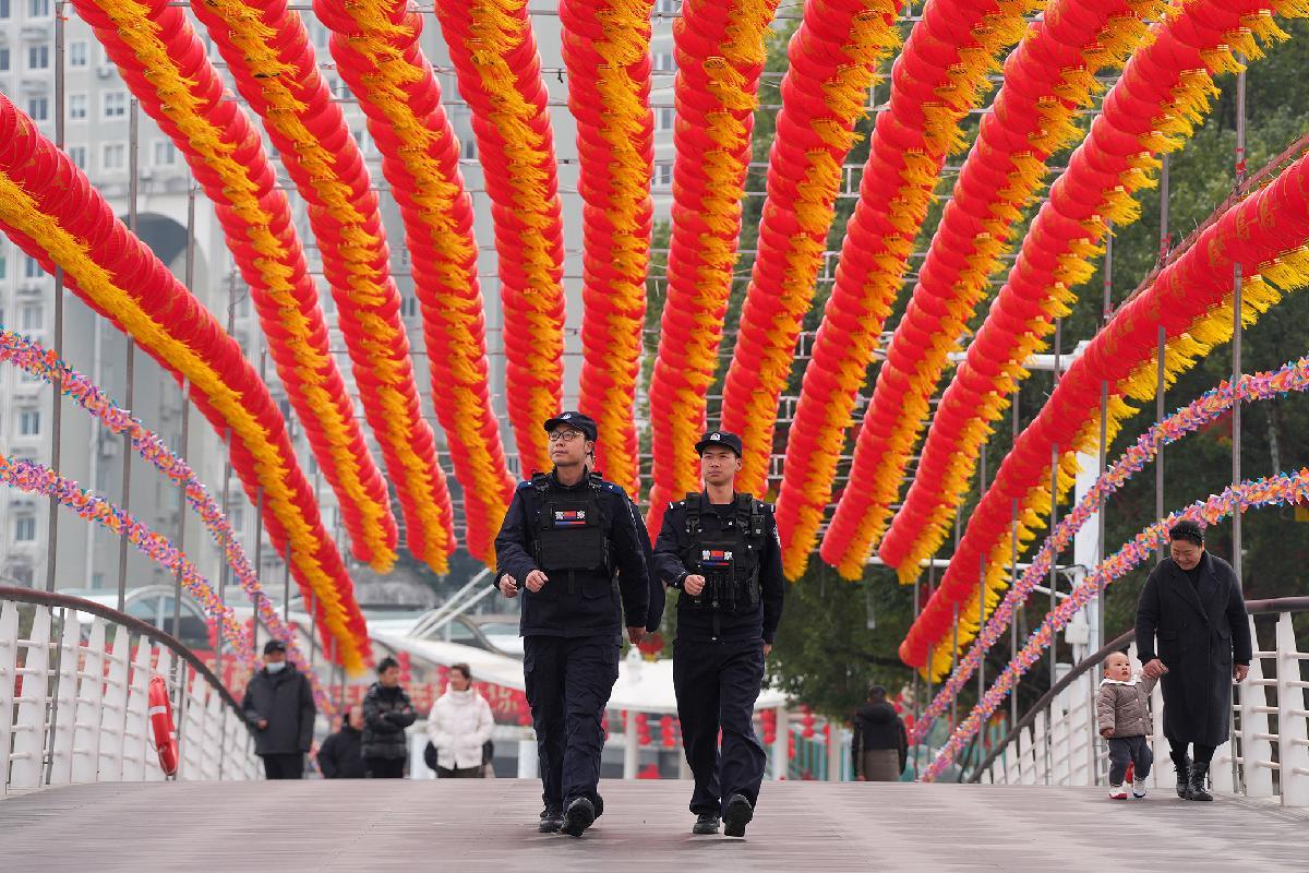 2月17日,浙江省臺州市公安局黃巖分局民警堅守崗位,做好巡邏防控、景區(qū)值守、安全檢查等各項工作,守護群眾度過一個歡樂祥和的春節(jié)。