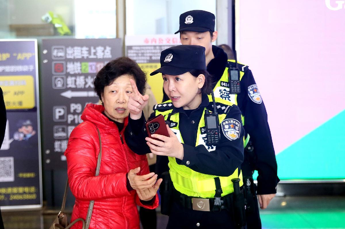 2月22日,上海市公安局閔行分局加強疊加用警,特別是在高峰時段、重點點位科學(xué)設(shè)置勤務(wù),優(yōu)化交通疏導(dǎo),全力保障上海虹橋交通樞紐秩序井然。