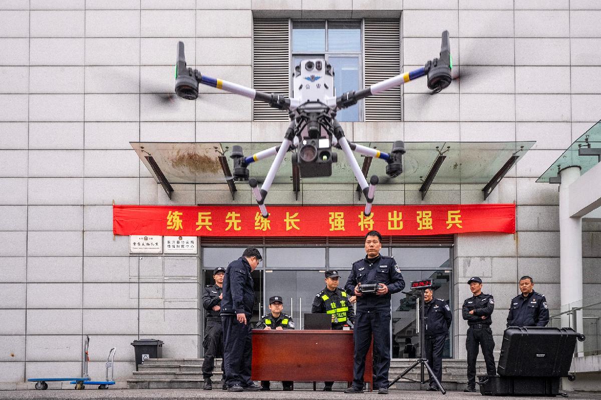 圖為巡特警大隊組織開展警用無人機(jī)高空偵測科目比武。