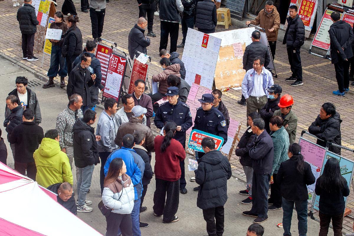 2月27日,浙江省臺州市黃巖區(qū)在人力資源市場舉辦首場新春招聘會。臺州市公安局黃巖分局城北派出所在現(xiàn)場開展以反詐、禁毒為主的安全防范宣傳,提高務(wù)工人員的安全防范意識。