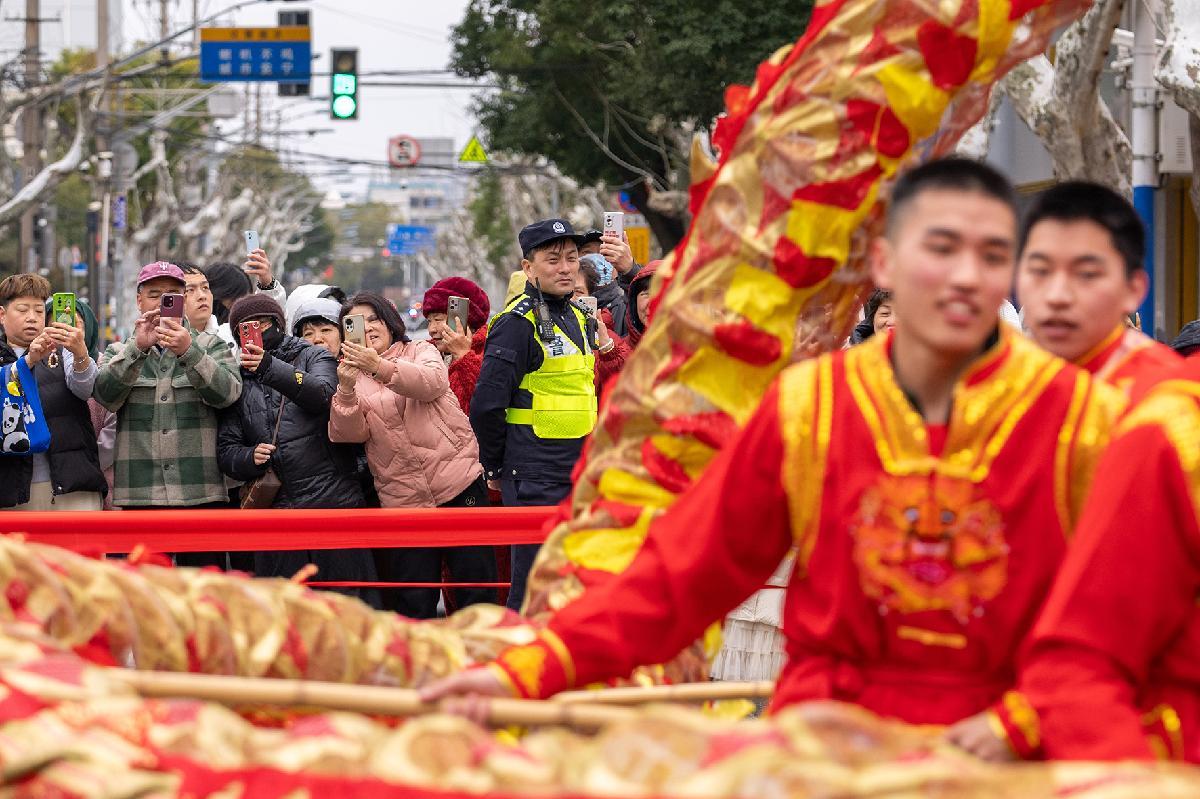 3月3日,上海市公安局崇明分局民輔警在城橋鎮(zhèn)元宵節(jié)文化活動現(xiàn)場執(zhí)勤。